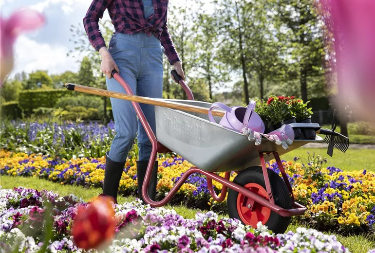 Damit die Gartenarbeit leicht von der Hand geht und das Arbeiten im Garten Spaß macht, braucht es ein paar Hilfsmittel. Die nehmen viele zwar für selbstverständlich, sie sind aber unerlässlich, damit der Garten immer gut gepflegt ist. Die Klassiker unter den Gartengeräten sind Spaten und Schaufel. Nur so lassen sich neue Gehölze und Bäume kinderleicht einpflanzen und umpflanzen. Ein guter Spaten macht das Ausheben eines Pflanzlochs zum Kinderspiel. Ebenfalls wichtig sind ein Rechen und eine Harke. Wenn das Laub im Herbst fällt, muss es vor allem vom Rasen entfernt werden. Das geht am besten mit einem Rechen. Eine Harke sorgt im Beet für Ordnung. Und je nach Größe des Gartens benötigt man neben einer Gartenschere auch eine Hecken- und Baumschere, eine Astsäge und eine Axt. Damit die Gartenabfälle auch fachgerecht entsorgt werden können, ist eine Schubkarre oder zumindest ein großer Eimer von Vorteil.